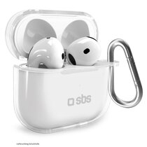 Sbs TPU Case für AirPods 4 transparent Schutzhülle mit Metallkarabiner